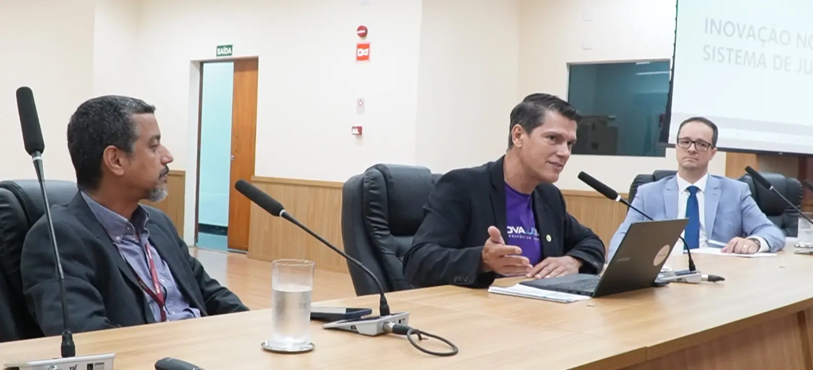 O Judiciário de Mato Grosso foi representado pela juíza Hanae Yamamura, diretora do Fórum de Cuiabá, pelo juiz Vinicius Galhardo, membro do Laboratório de Inovação do TJMT (InovaJusMT), e pelo gestor do InovaJusMT, Thomas Caetano. Destacando o pioneirismo do TJMT no investimento em tecnologia, a juíza Hanae Yamamura defendeu que toda inovação seja compartilhada entre as instituições.